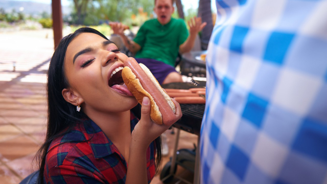 Yorucu bir iş gününün ardından evden içeri girerek kendisini en seksi fantezi çamaşırlarıyla beklemekte olan yarak yamyamına karşı koyamayan seks tutkunu oğlan, her şeyiyle teslim olan sevimli hatunun ağzını tıka basa...